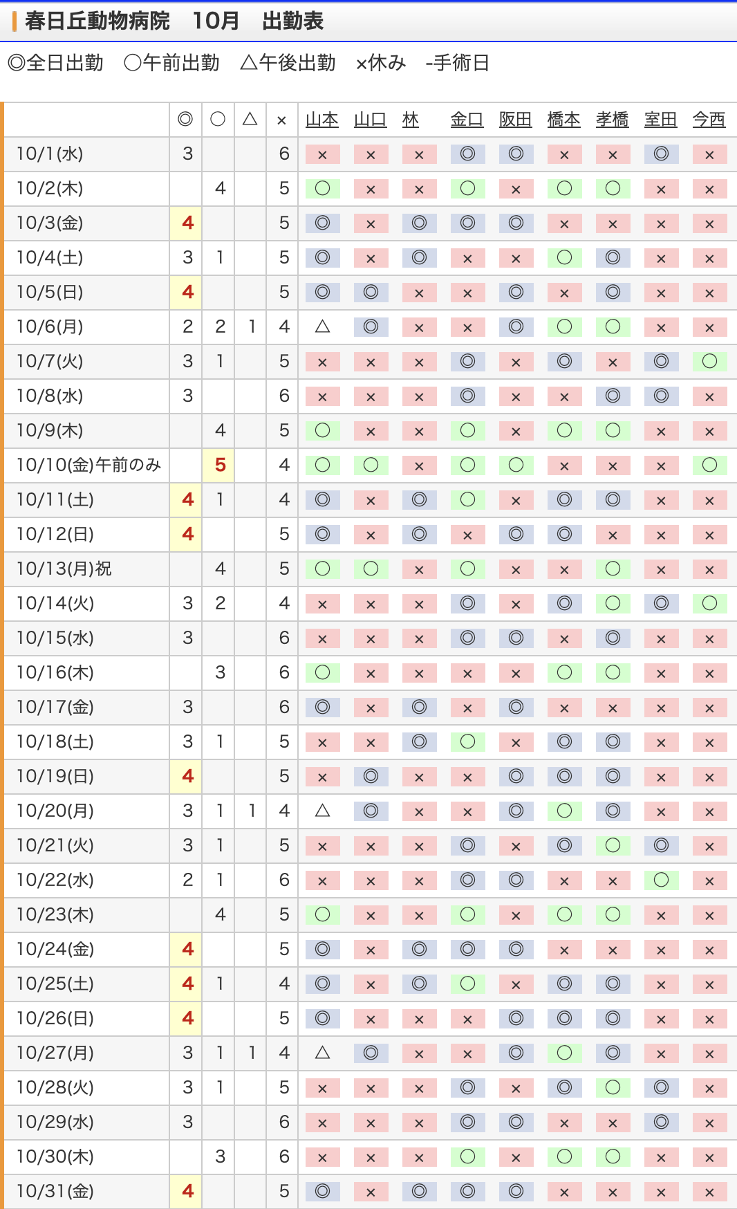 ※10月から木曜日午後休診、日曜日午後診察となります。また午前診察時間10:00~12:30、午後診察時間16:30~19:00に変更になります。